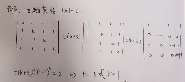 分析:矩阵A是4阶矩阵,且r(A)=3<4,则|A|=0