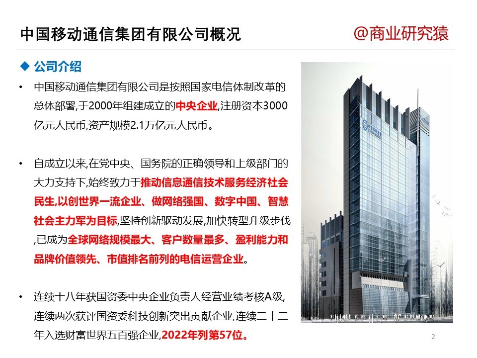主要业务:致力于推动信息通信技术服务经济社会民生,以创世界一流企业、做网络强国、数字中国、智慧社会主力军为目标,坚持创新驱动发展,加快转型升级步伐,已成为全球网络规模最大、客户数量最多、盈利能力和品牌价值领先、市值排名前列的电信运营企业。