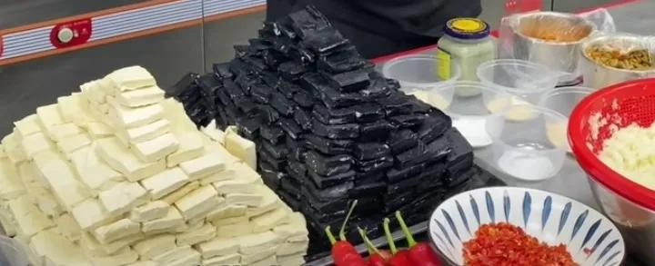 臭豆腐克选用黑白两种颜色搭配更有卖相。