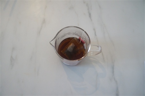 先用热水把红茶茶包浸泡几分钟,茶水颜色变深后取出茶包,茶水晾凉备用。