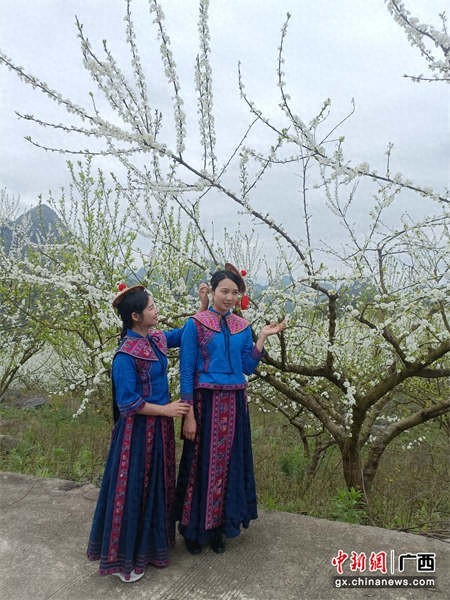 中新网广西新闻4月10日电(覃春娥)李花怒放一树白,遥望凝是春飞雪。近日,在广西环江毛南族自治县明伦镇豪洞村,千亩李花竞相绽放,美了乡村,也兴了产业。