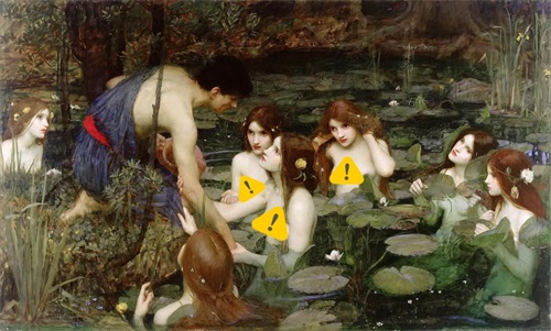 沃特豪斯的作品大多以古代神话作为主题。如他有描写古代荷马史诗中《奥德赛》描写的一种叫“塞壬”的生物,传说“塞壬”原本是天上的天使,因为触犯了神,被惩罚折去了双翼贬下人间,形象和我们所认知的美人鱼几乎一样。堕落人间的“塞壬”通常会在岸上唱出纯净优美的歌声魅惑水手,在它们的领地也堆满了水手的尸骸。