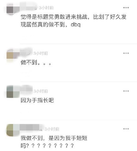 感觉这个动作很难啊!于是网友们纷纷模仿,结果大多数人都说自己做不到↓
