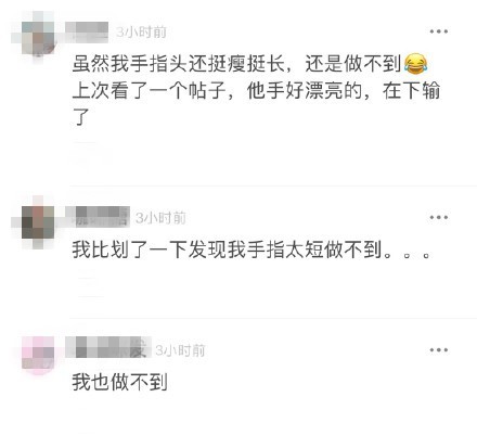 一时之间网友们纷纷模仿,结果能做到者寥寥无几,大部分人手都快累抽筋了也只能做出这种状若鸡爪的程度↓
