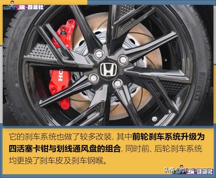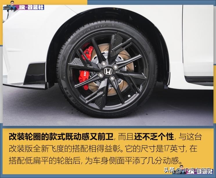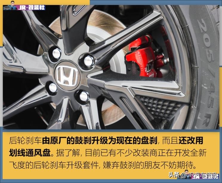 对操控及低矮姿态有追求的朋友而言,它的减振器没有改装确实是差点意思,而后轮刹车系统由原厂的鼓刹升级为现在的盘刹则是让大部分全新飞度准车主欣喜之处。