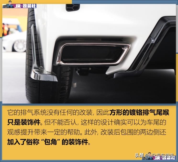 除了尾灯组之外,车尾的大部分细节都做了改装,甚至连尾部造型也有一定的变化,改装后的车尾同样颇有几分机甲的味道,整体给我的感觉是动感且前卫。