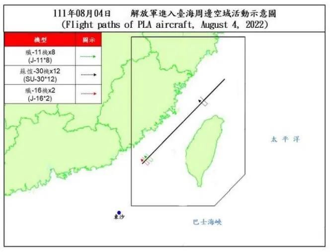 台方制作的解放军军机穿越海峡中线示意图