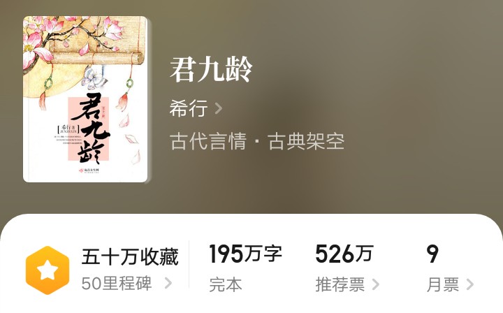 在这次100部优秀网文作品入选国家图书馆,永久典藏的书里面。大神希行,有两本书入选一本是《君九龄》,一本是《诛砂》。对于大神希行,喜欢看女生小说的人都不会陌生,它的简介里面写道:生于燕赵之地,以笔编织五彩灿烂的故事为平淡生活增添几分趣味,爱有一技之长的女主,希望看过故事的女子们能悦之一笑。