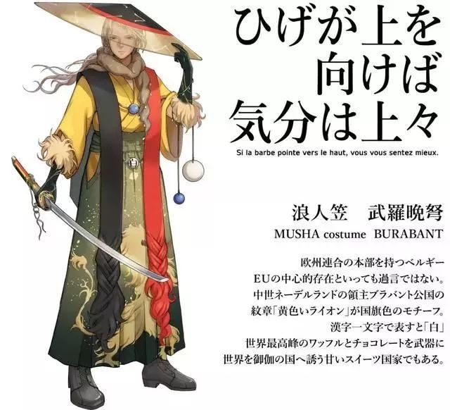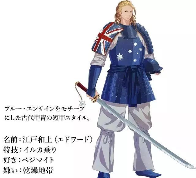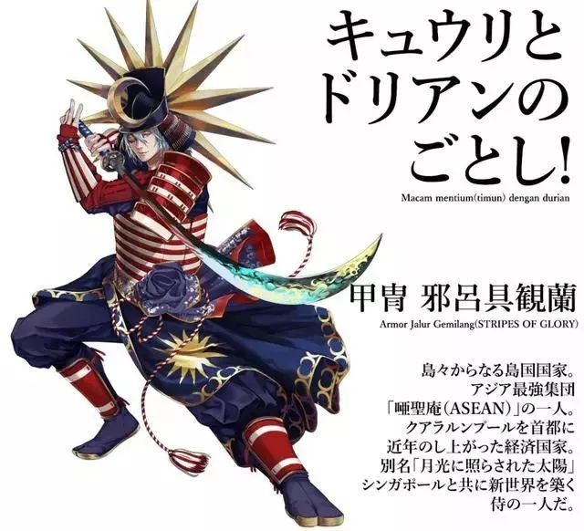 据业内人士解析,上图中央硕大的“WORLD FLAGS”(世界国旗),表明了此次设计师将动漫化理念的取材对象瞄准了最具辨识度的国旗之上。形象采用了日本古风武士的风格,而后根据每一国家的文化属性,地缘风貌,以及国旗的设计风格进行专属化改造。很好的展现了各个国家的文化。