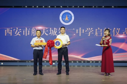 仪式现场,航天基地党工委委员、管委会副主任赵舰与校长闫广涛进行了钥匙交接, 代表着学校正式入驻起航。接着,西安市航天城第二中学教师们带来了深情款款的朗诵节目《启航》,生动地介绍了学校楼宇等建筑设施蕴含的校园文化,饱含了学校和教师对航天二中学子的殷殷期待。