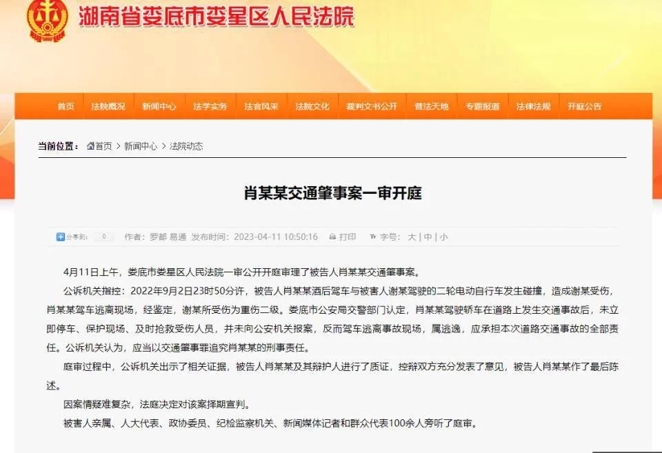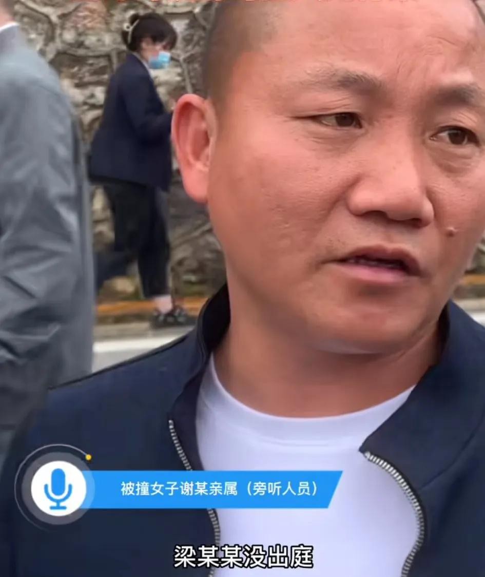 4月11日开庭,宝马女司机肖某某出庭,然后还有另一位被告人梁某(女司机老公)没有出庭。