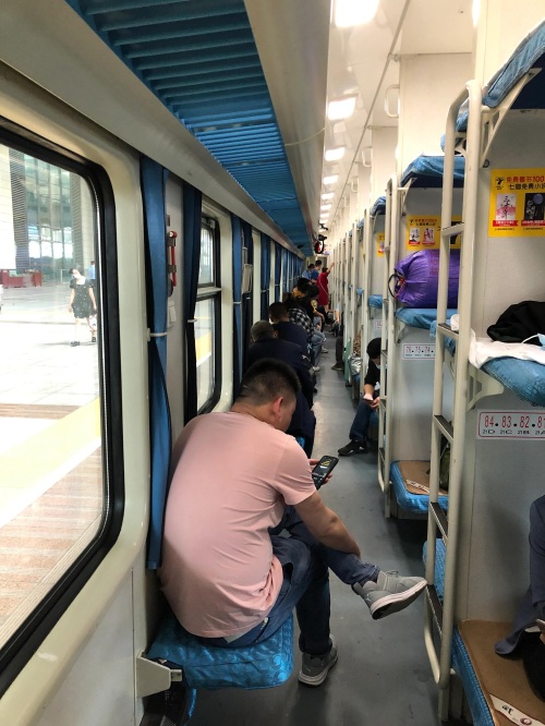 拍张内饰,因为是短途客车,且在白天运行,所以武铁会把卧铺车厢当作硬座使用,这样可以有效避免运力闲置,提高上座率。