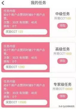 和“趣步”一样,“链信”的任务模式分为初级任务,高级任务,专家级任务、史诗级任务四个阶段,每个阶段的任务领取都需要不同数额的CCT代币。