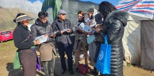 气象科普人员在果洛州玛沁县虫草采挖点开展气象科普宣传活动 摄影:代青措