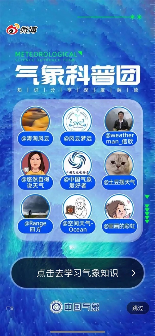 同时,通过“首席说天气”,一批气象专家开始尝试运营科普自媒体,“涛淘风云”“气候行动先生”“土豆摆天气”等自媒体账号受到网友的喜爱。气象部门还联合新浪微博完善“气象科普团”机制,2024年实现科普信息传播2.8亿次,有力拓宽了气象科普渠道。