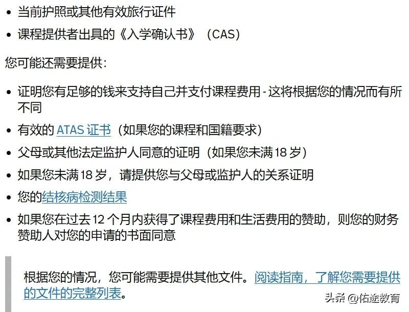 2、关于签证:您最早可以在课程开始前 6 个月申请签证。您通常会在 3 周内收到签证决定,英国境外申请学生签证一般需要以下文件。