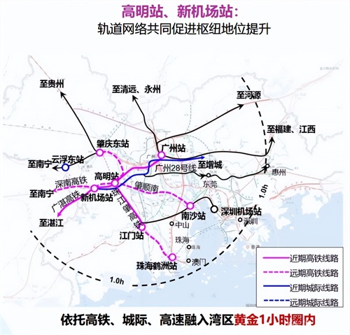 具体来看,是这样的,“两高”指已启动建设的广湛高铁和规划预留的南深高铁,“一城际、一快线、一预留线”指肇顺南城际铁路、轨道快线、预留轨道交通线路。