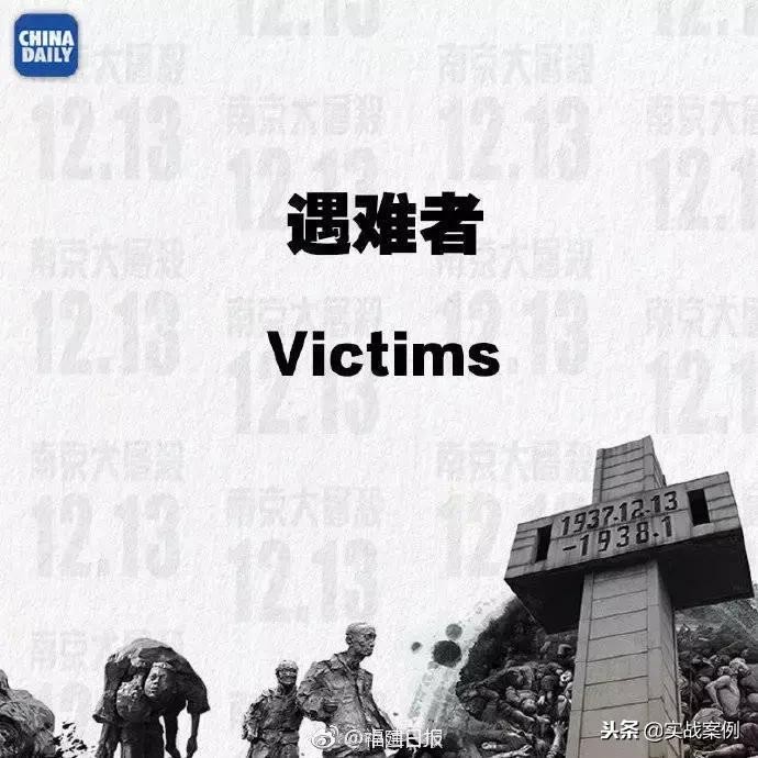 #双语世界说#海报中采用了“汉语+英文”的形式记录当初的惨案事件,旨在告诉世界关于南京大屠杀那段惨痛的历史,而今天,我们都记住了这些单词。