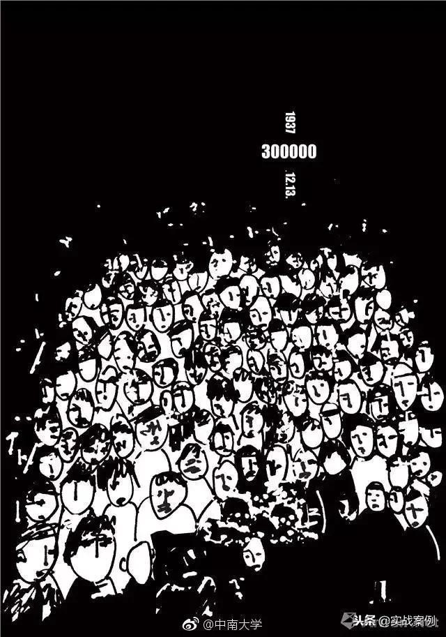 黑暗中露出密密麻麻的人头,抢眼的300000数字,都代表着遇难者,看完这海报还真是勾起了我们对历史的回忆。