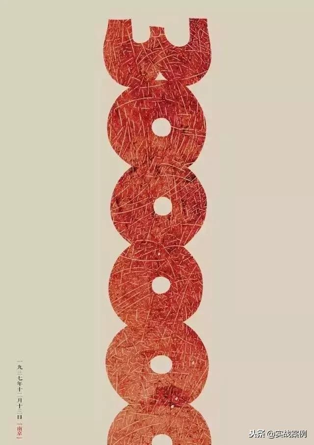 整体看去,似乎海报设计得很“平凡”,但从这1937数字开始一直缠绕到结尾的2014数字,证明南京大屠事件成为了历史,但勿忘历史。