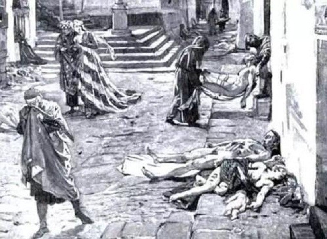 当时的瘟疫患者会呈现发烧呕吐、皮肤露出蓝紫色斑点的症状,紧接着病人身上的淋巴部位就会溃烂坏死,最终全身发黑肿胀失去生息。