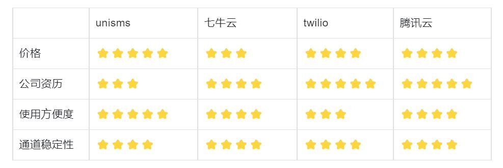 UniSMS是全球首个聚合短信服务平台,产品本身是不错的,使用起来相当方便,价格也是最大的优势之一,相比其他平台会低不少,但是公司成立的比较晚一点,资历相比老牌的短信平台可能差一点。