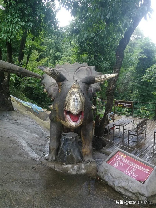 再往上走就是金刚岭了,有一个巨大的金刚,几乎所有人都会在这里拍照,金光湖最具特色的,周围有几个恐龙,数量不多;