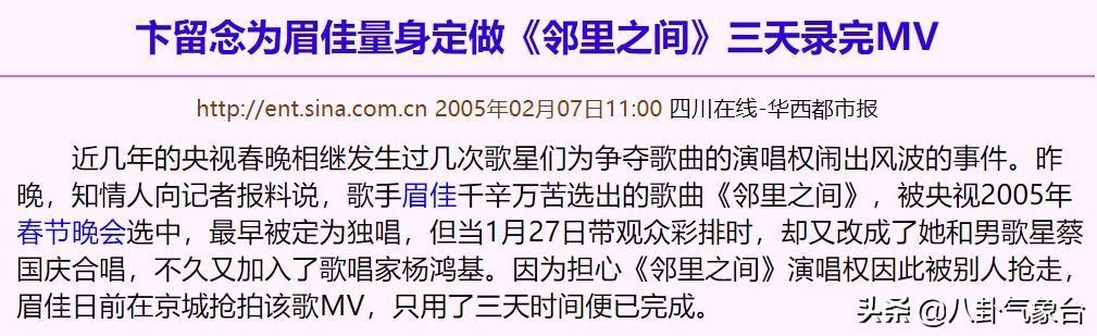 尽管是春晚常客,身边又有高人指点,眉佳却一直没有大红大紫,归根到底,还是因为眉佳没有一首传唱度高的歌曲。