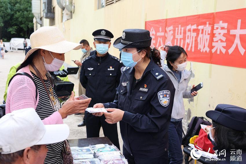 警方现场向受害群众发还被盗手机。昆明警方供图