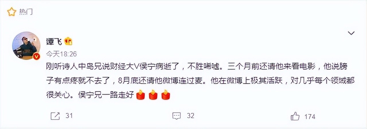 陪伴过很多投资者成长的大V侯宁,去世了。