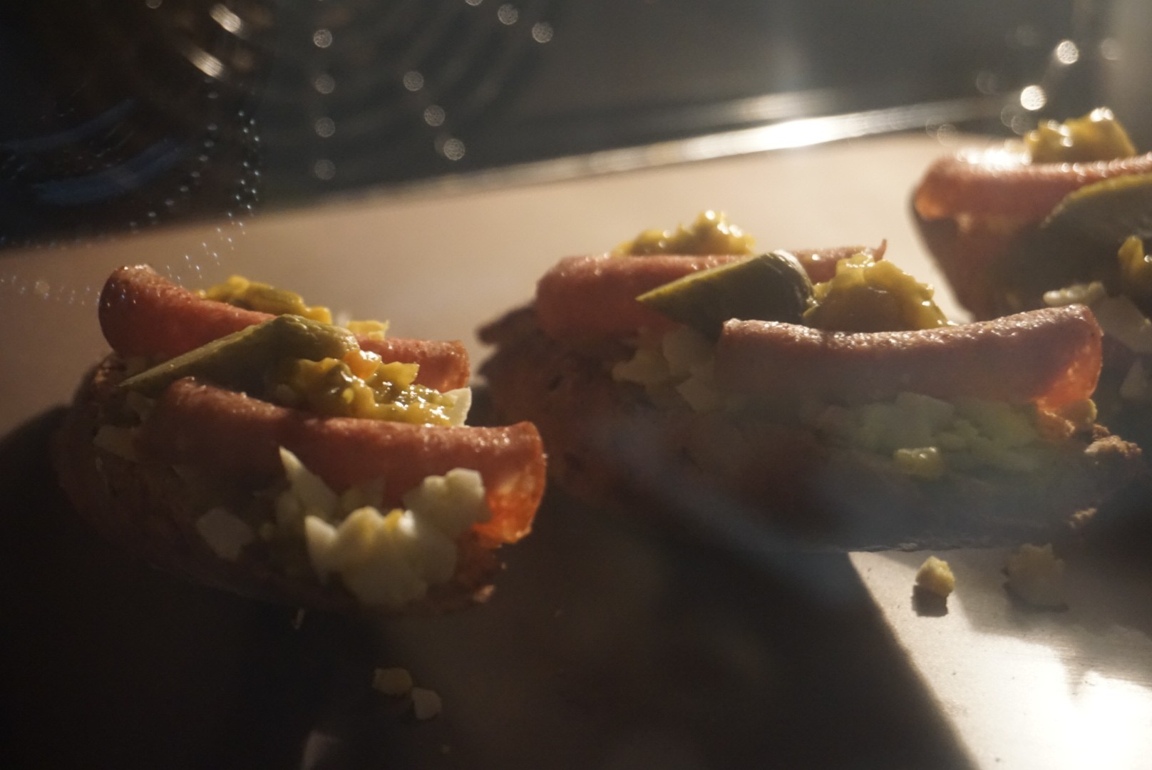 4.放入烤箱180度烤几分钟即可。不喜欢烤的,也可以直接吃,反正都是熟的,烤一下就是香肠更香而已。