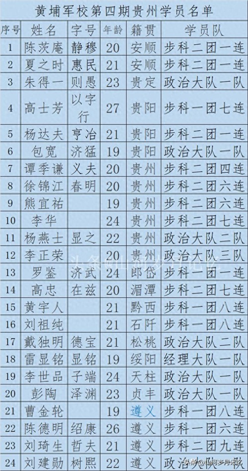 24名黄埔军校4期贵州籍学员名单及毕业照片