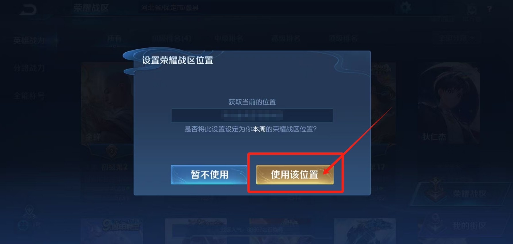4. 确认使用该位置:输入或选择好位置后,点击上方的设置按钮,最后点击“使用该位置”即可完成战区修改。不过要注意,这种方式修改的战区位置只能是你当前所在城市或附近的区域。