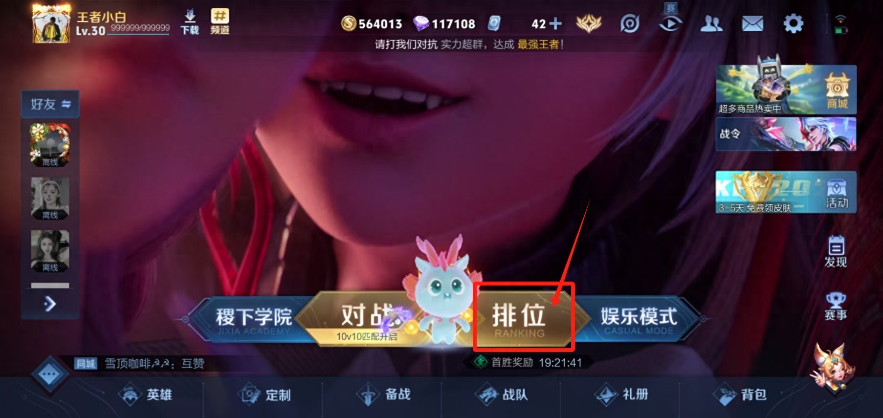 1. 进入游戏设置:打开王者荣耀游戏,进入游戏大厅后点击“排位”选项。