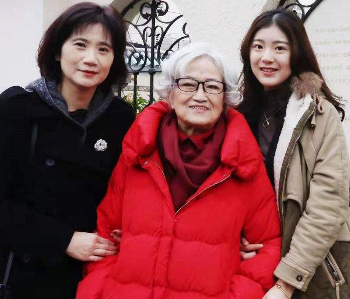 另一张照片中,王文娟一脸笑容地看着镜头,女儿孙女都在身旁。这也是祖孙三代为数不多的公开同框,令人感慨。