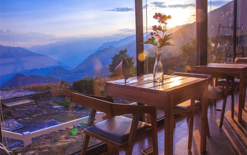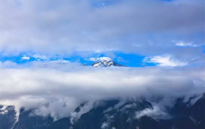 房间阳台正面就朝向这雪山,可以坐在房间里就能看到云海了。