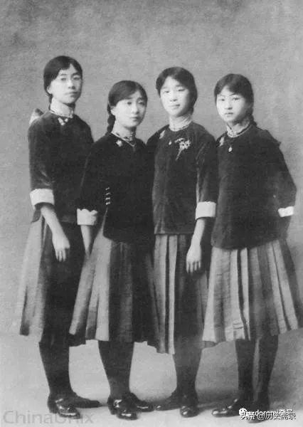 1916年,林徽因在培华女子中学开始接受英国贵族式的教育,优裕的生活和良好的教育使她和一同上学的表姐们个个文雅出众,谈吐得体。她们身着五四时代女学生的改良装,在北京最好的一家照相馆拍下合影。