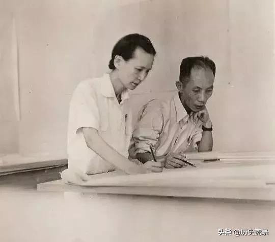 (1950年 林徽因与清华建筑教师高庄共同讨论国徽设计方案)