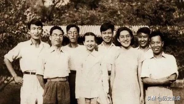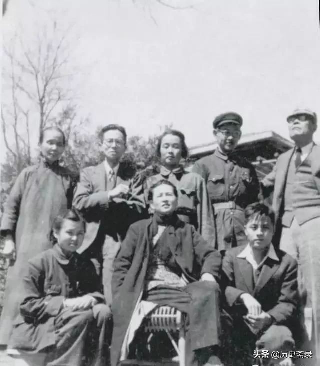 (林徽因、梁思成、金岳霖与学生们合影)