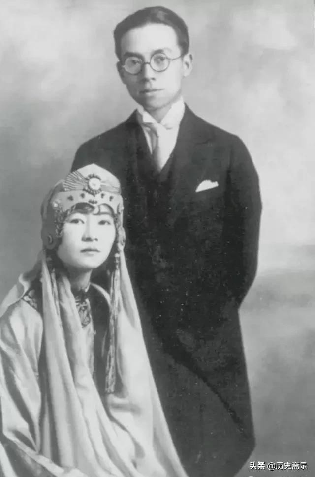 (图为1928年3月,梁思成和林徽因在加拿大的结婚照,礼服由林徽因自己设计)