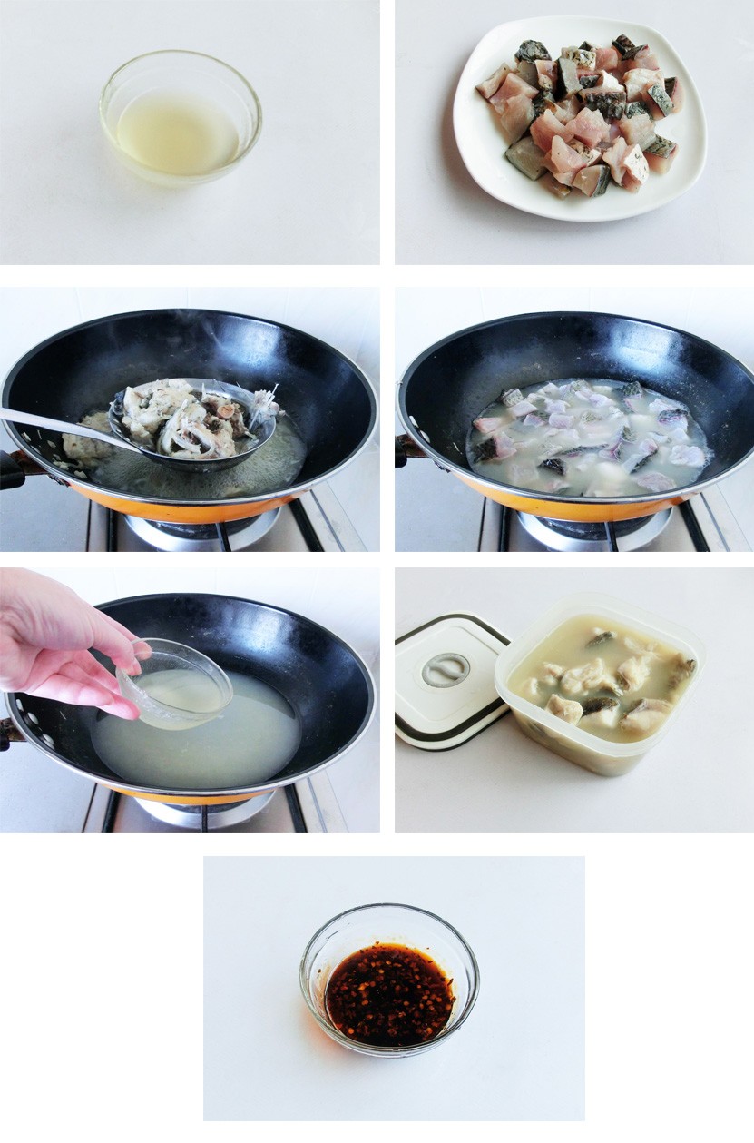 8. 将煮好的鱼倒入保鲜盒中。
