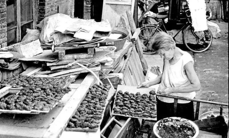 上世纪90年代,在老道外大杂院里做煤球的老人