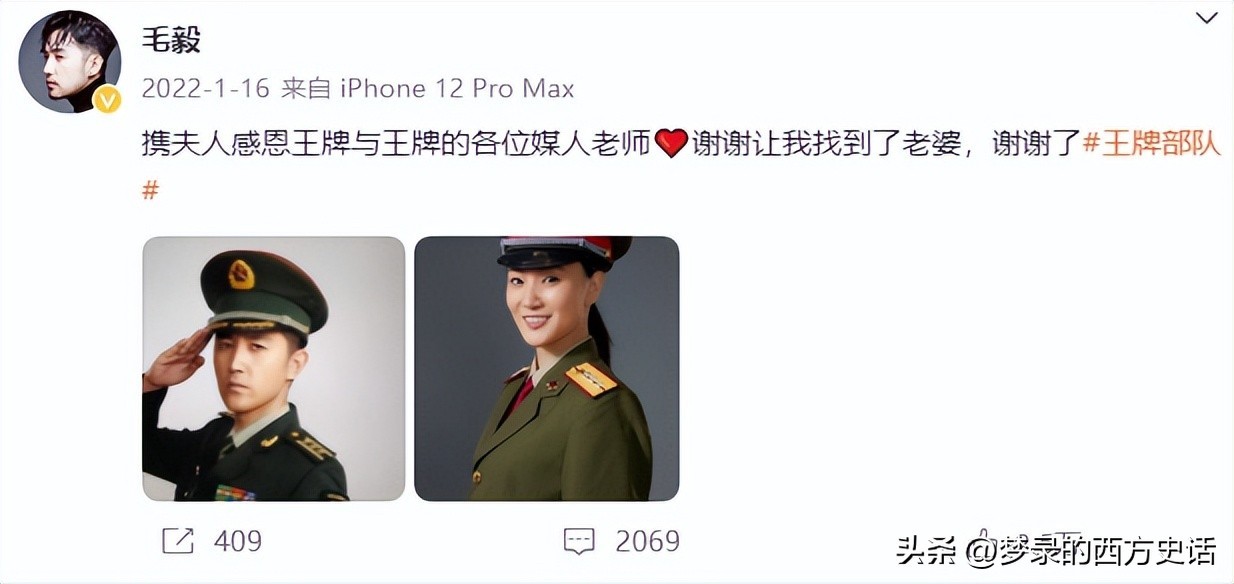 侯梦莎跟毛毅是在拍《王牌部队》时认识的。
