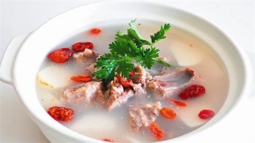 2、锅内加水,烧开后,放入羊排,焯去血水,去油沫。捞出备用。此时山药去皮切块,再烧一锅水,水热后放入羊排,山药和莲子,枸杞,当归,倒入一匙醋。大火煮开后转小火,炖一小时后加入盐,再炖15分钟左右,起锅倒入胡椒粉即可。