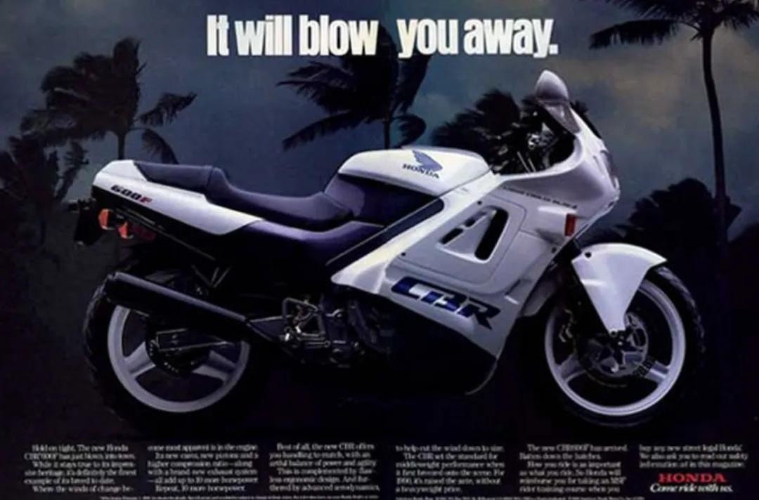 你可能很难想象曾经那么叱咤风云CBR600系列车型的第一代其实是一款专供欧美的特供车型,当时还给这款车取了一个特别牛x哄哄的名字:Hurrican 飓风。