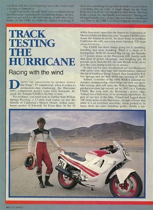不过后来本田在做市场调研的时候发现人们并不是太喜欢Hurrican 飓风这个名字,所以在1988年的那次小改款之后这个车型就删除了这个名字,只留下了CBR600F这么一个车型代号。