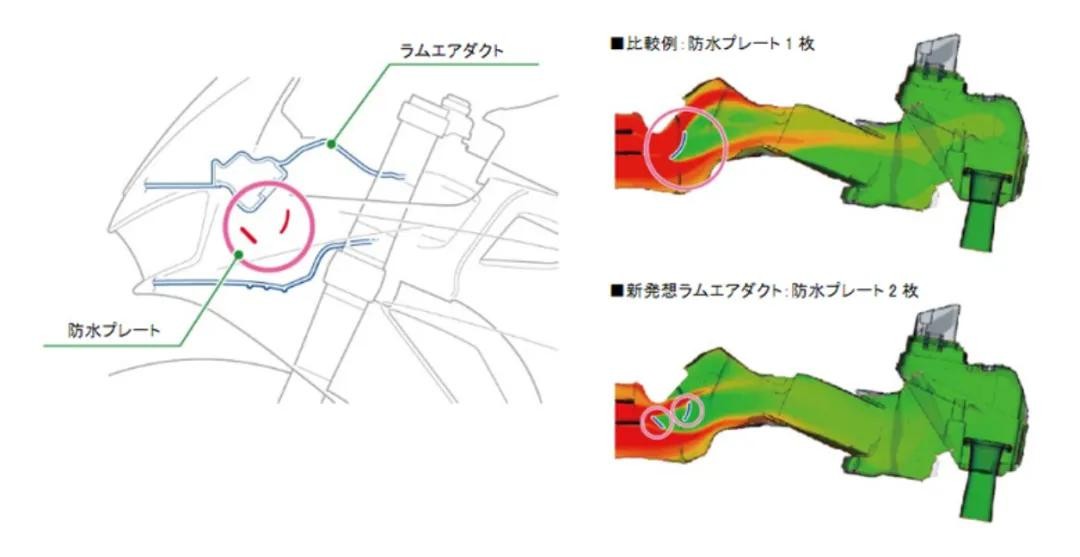 设计师通过反向倾斜来提高导风效果,但这一改动却引发了新的问题。在原先的倾斜设计中并不存在的空气滤清器内部气压紊乱现象,如今却成了一个不得不解决的问题。