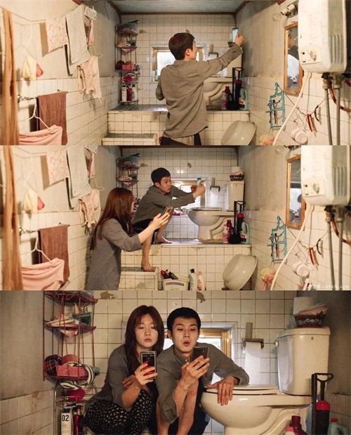 影片中的男主角金基宇出生在一个社会底层的家庭,他和父亲金基泽母亲忠淑以及妹妹金基婷一起住在一个黑暗、潮湿的地下室里,靠着折披萨店外卖盒为生。并且只能用一个在台子上的马桶和断断续续的无线网