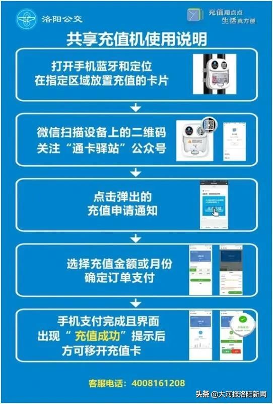 记者了解到,目前洛阳公交集团计划投入1000台IC卡自助充值机,7月15日前在市区主要公交线路的公交站台安装500台设备,后期将增加500台设备继续扩大覆盖范围(公交站台、商超、社区、各区行政服务大厅等),为更多的乘客带来智慧出行新体验。同时,还将免费为洛阳市各社区提供IC卡自助充值机用于公交敬老卡的年审和成人卡、学生卡、老年优惠卡的充值,如有意领取的社区请致电咨询,预约领取。