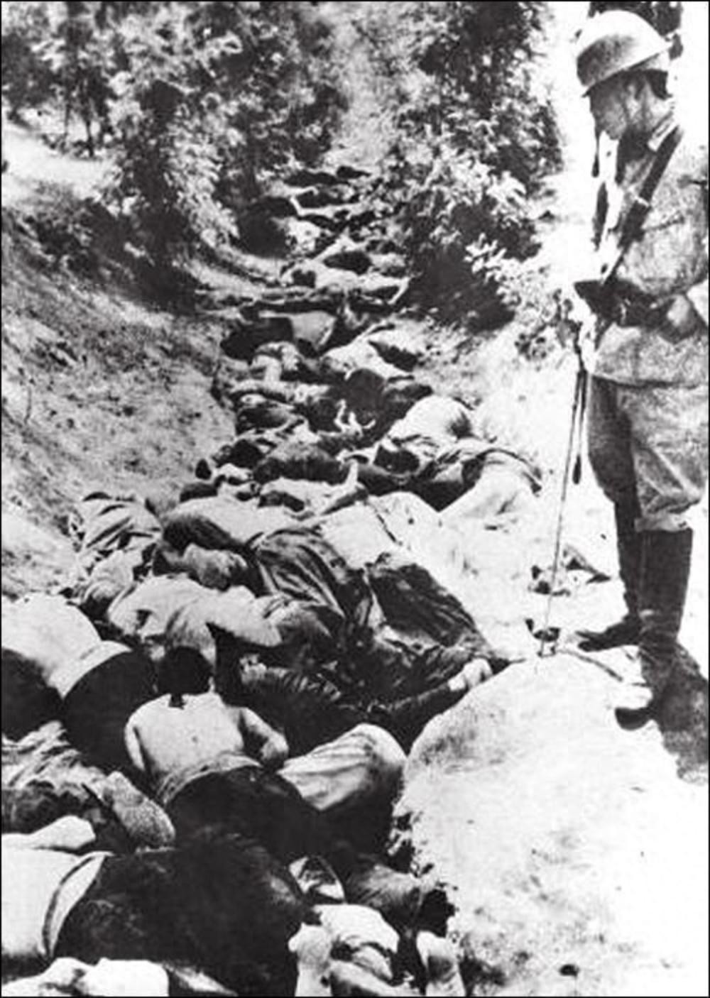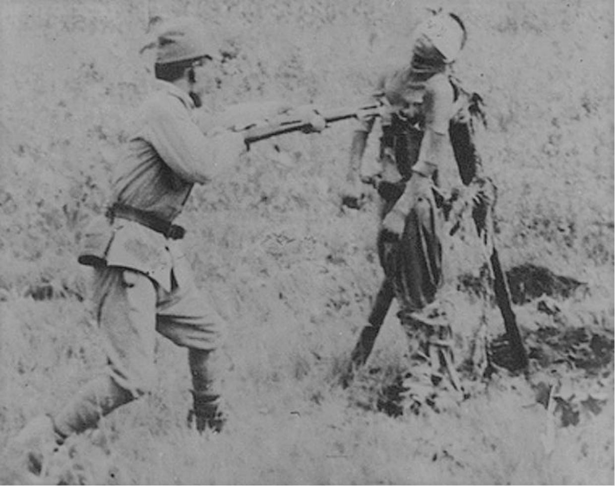 为了磨练新兵的胆量和残忍本能,日本老兵常常让新兵杀死中国人,并拍摄照片,然后将此照片带回日本报纸发表,成为日本民众崇拜的英雄